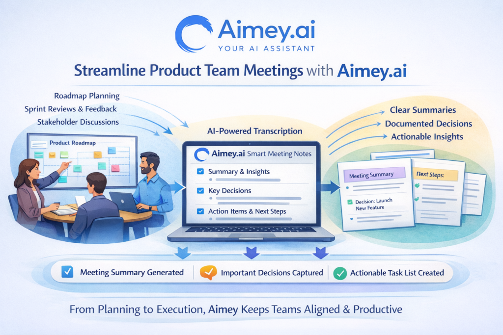 Aimey helps by capturing discussions and converting them into structured insights.